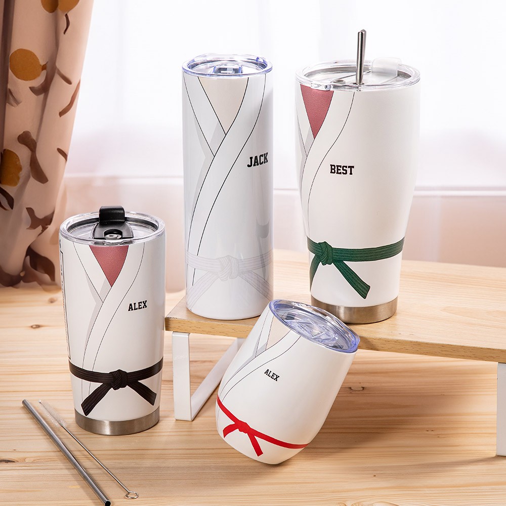 Personalized Design - This stainless steel tumbler features a customizable name and a unique karate belt uniform design. You can also customize your skin tone and belt color to suit your style, making it a special gift for karate lovers and coaches.