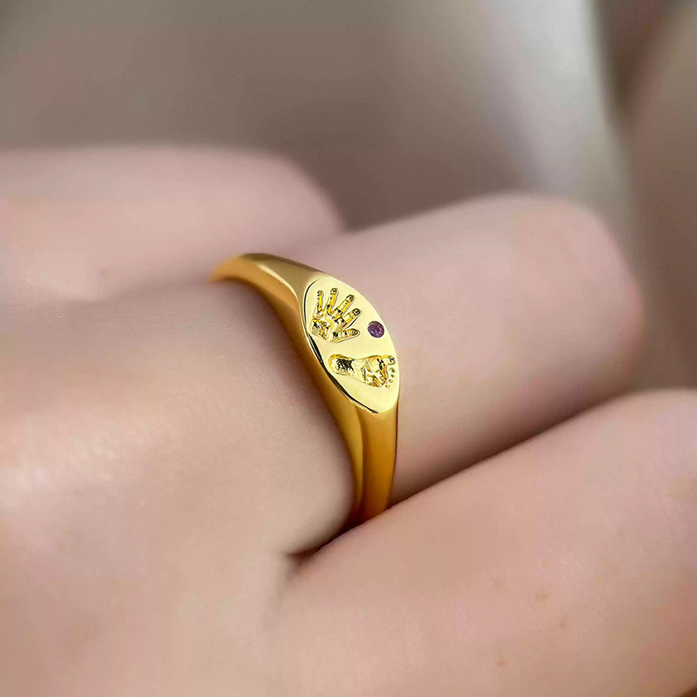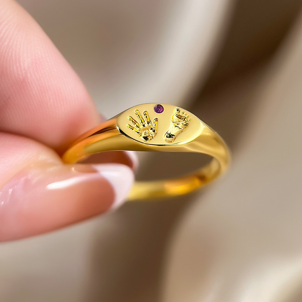This customizable baby handprint and footprint ring is the perfect first Mother's Day gift for new mothers, cherishing the unique mark of mother's love. The ring can be engraved with the baby's handprint or footprint, and can be selected from a variety of materials to meet the needs of different styles and preferences.