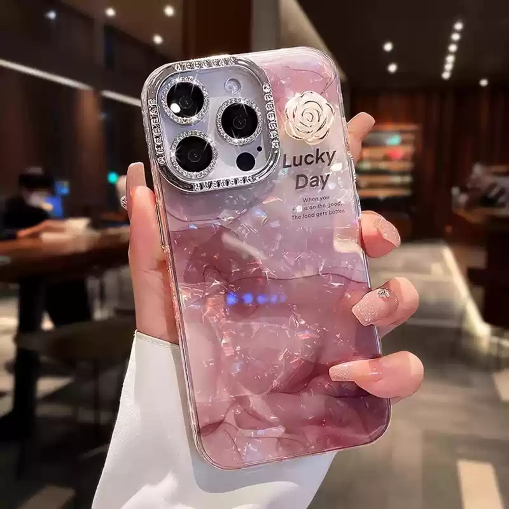 This gradient mother-of-pearl camellia phone case combines glossy mother-of-pearl material with three-dimensional camellia decoration, showing an elegant and romantic style, adding a refined and high-end feel to your phone.