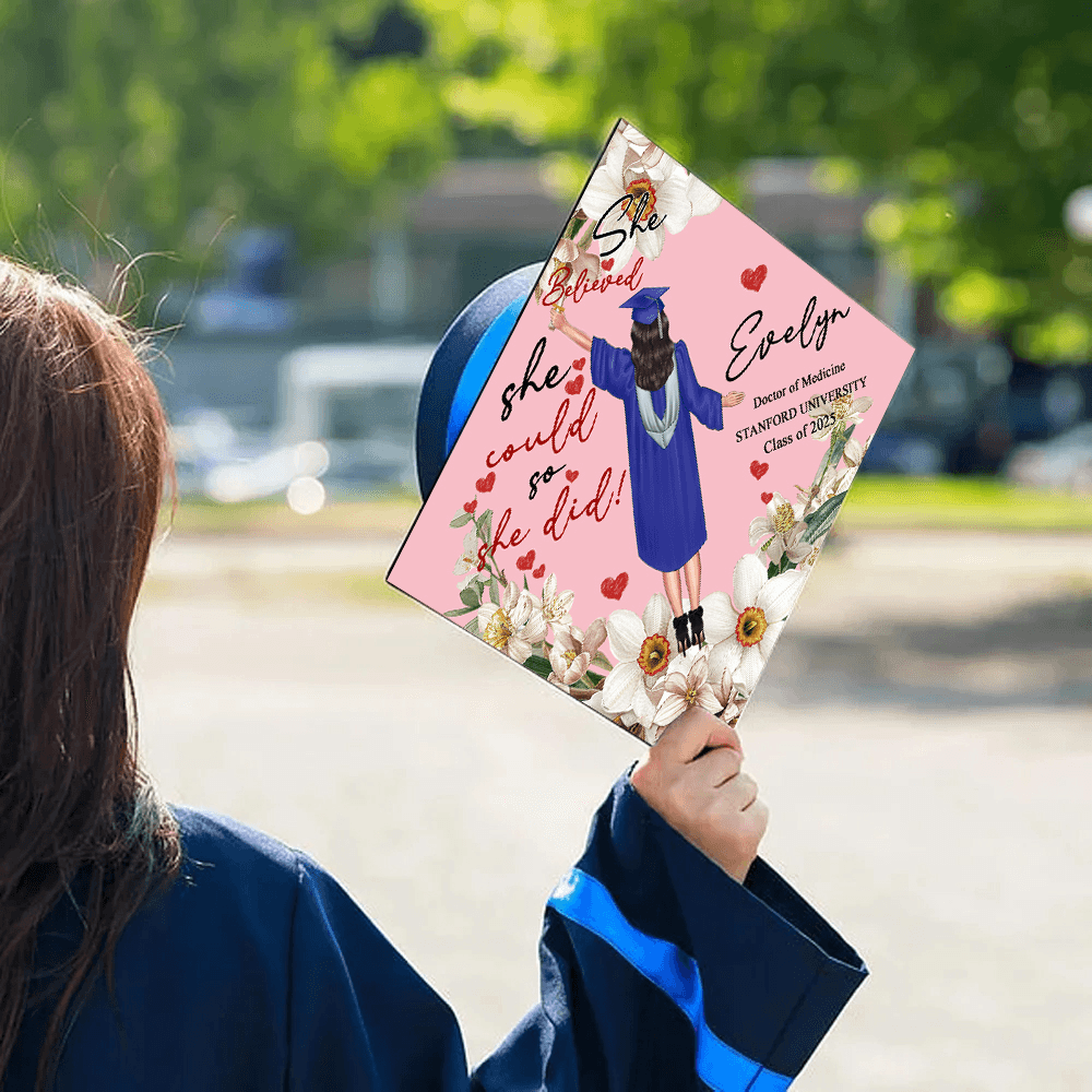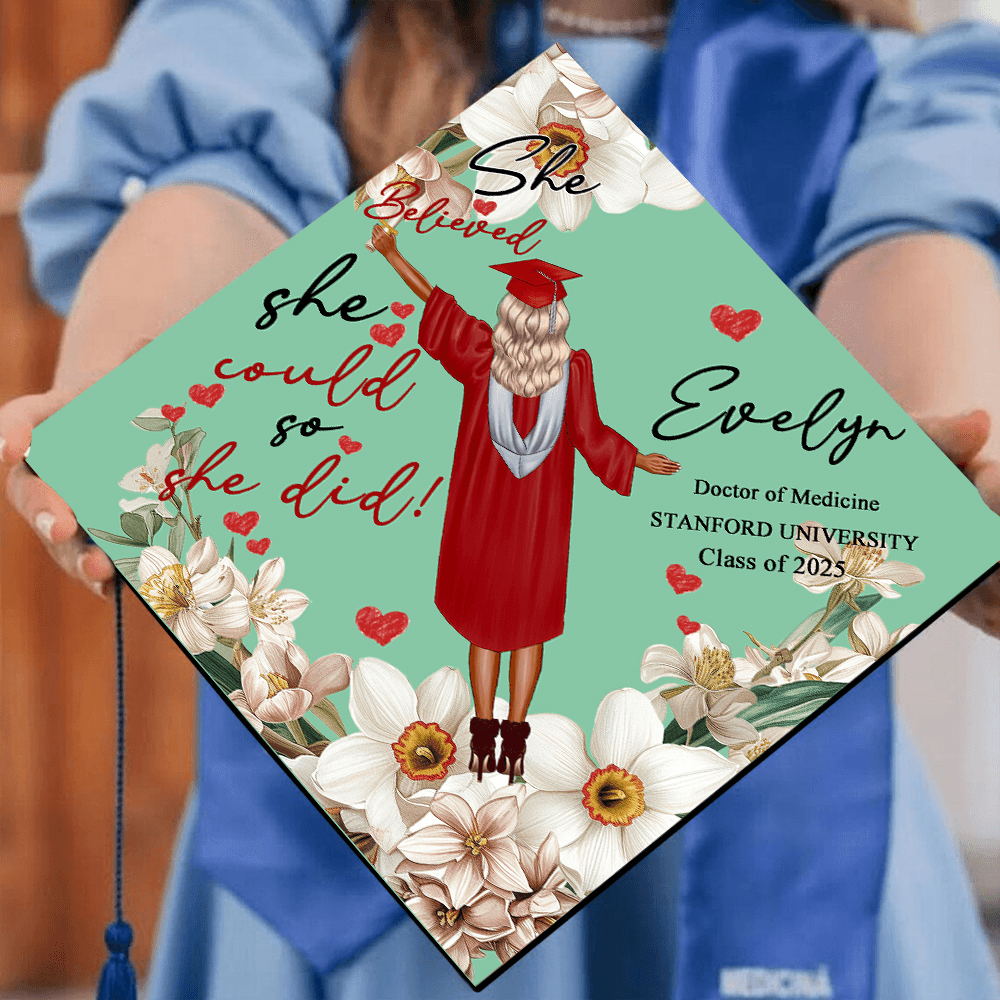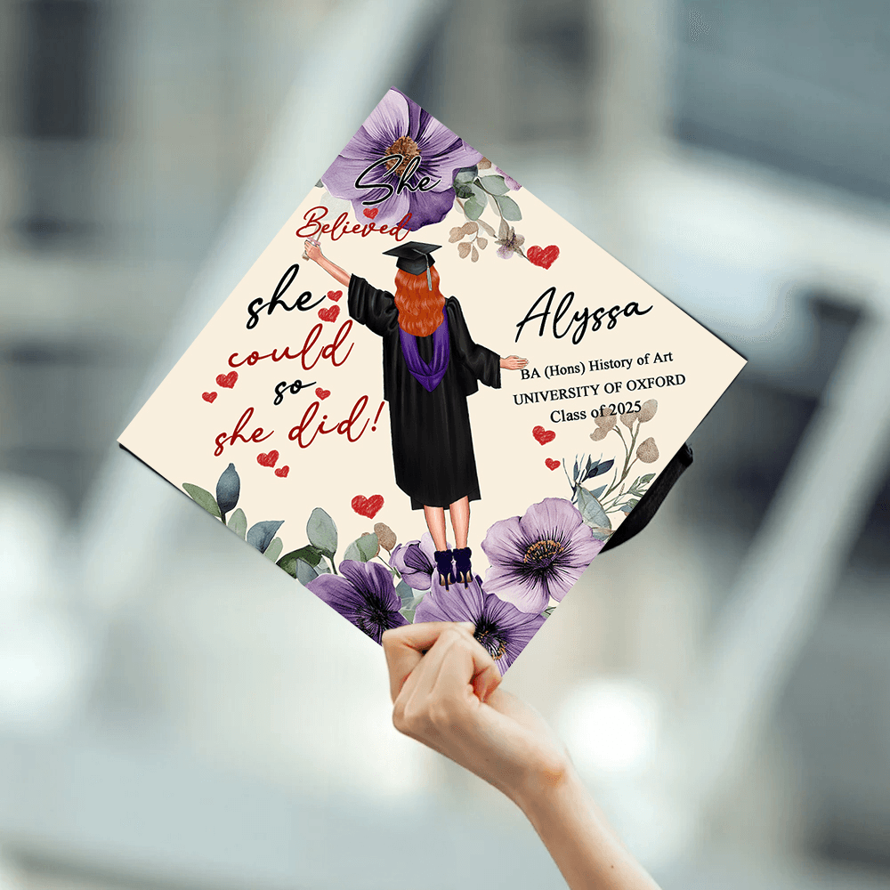 Empowering Graduation Quote - Features the motivational phrase "She Believed She Could So She Did", perfectly capturing the spirit of determination, resilience, and achievement that defines graduation day.