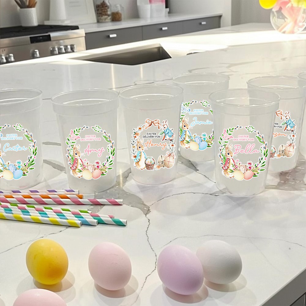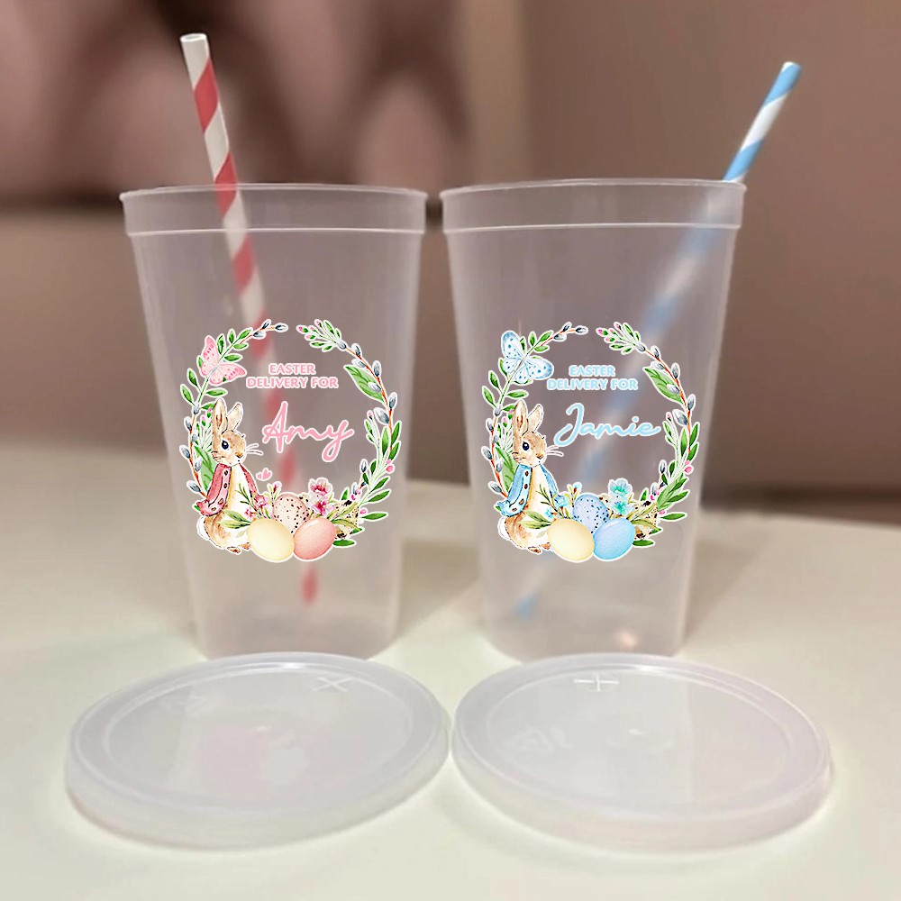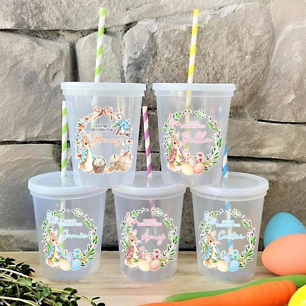 Personalized Easter Cups for Kids with Custom Name, Bunny Cup with Lid & Straw, Easter Basket Stuffer, Party Favor, Cute Easter Decor