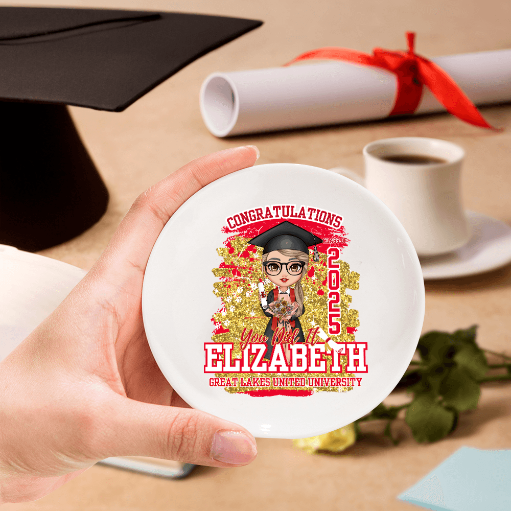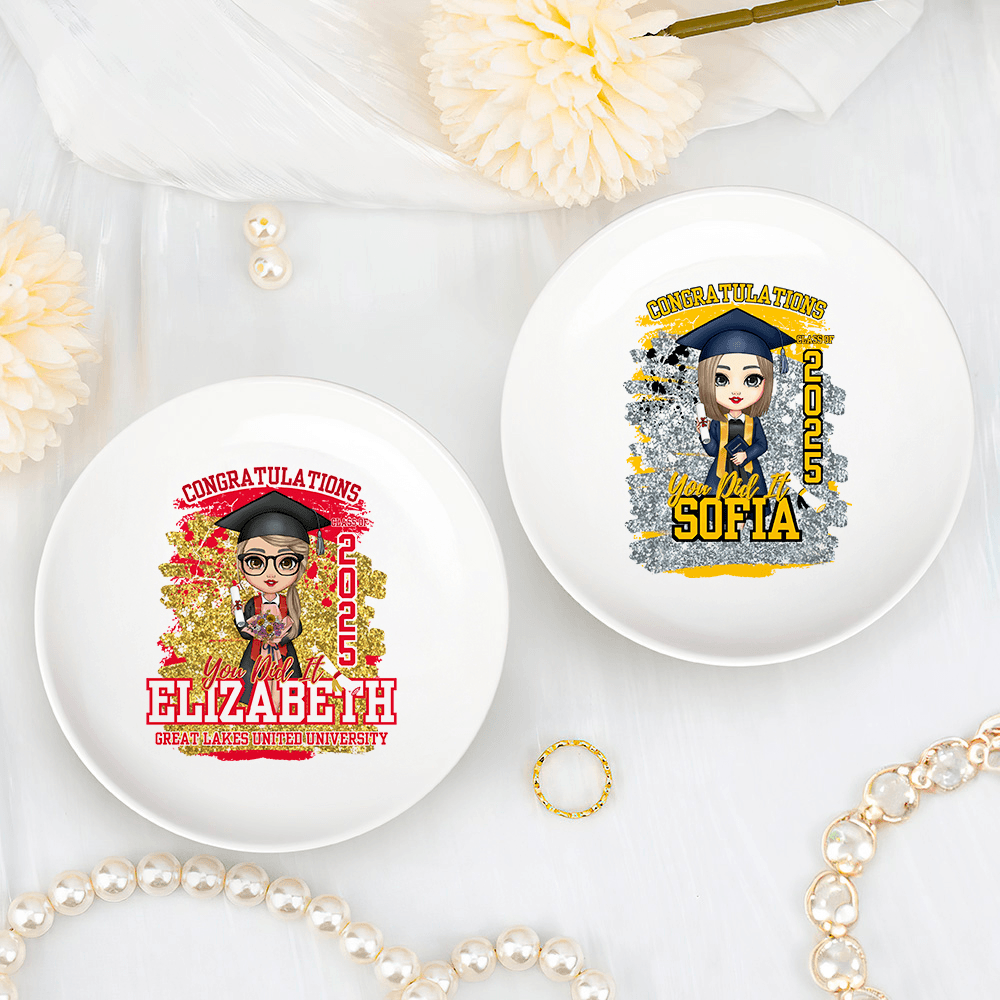 Personalized Touch - Customize this charming jewelry dish with the graduate’s name and a vibrant cartoon character wearing a graduation cap, making it a playful yet meaningful way to honor their big achievement.